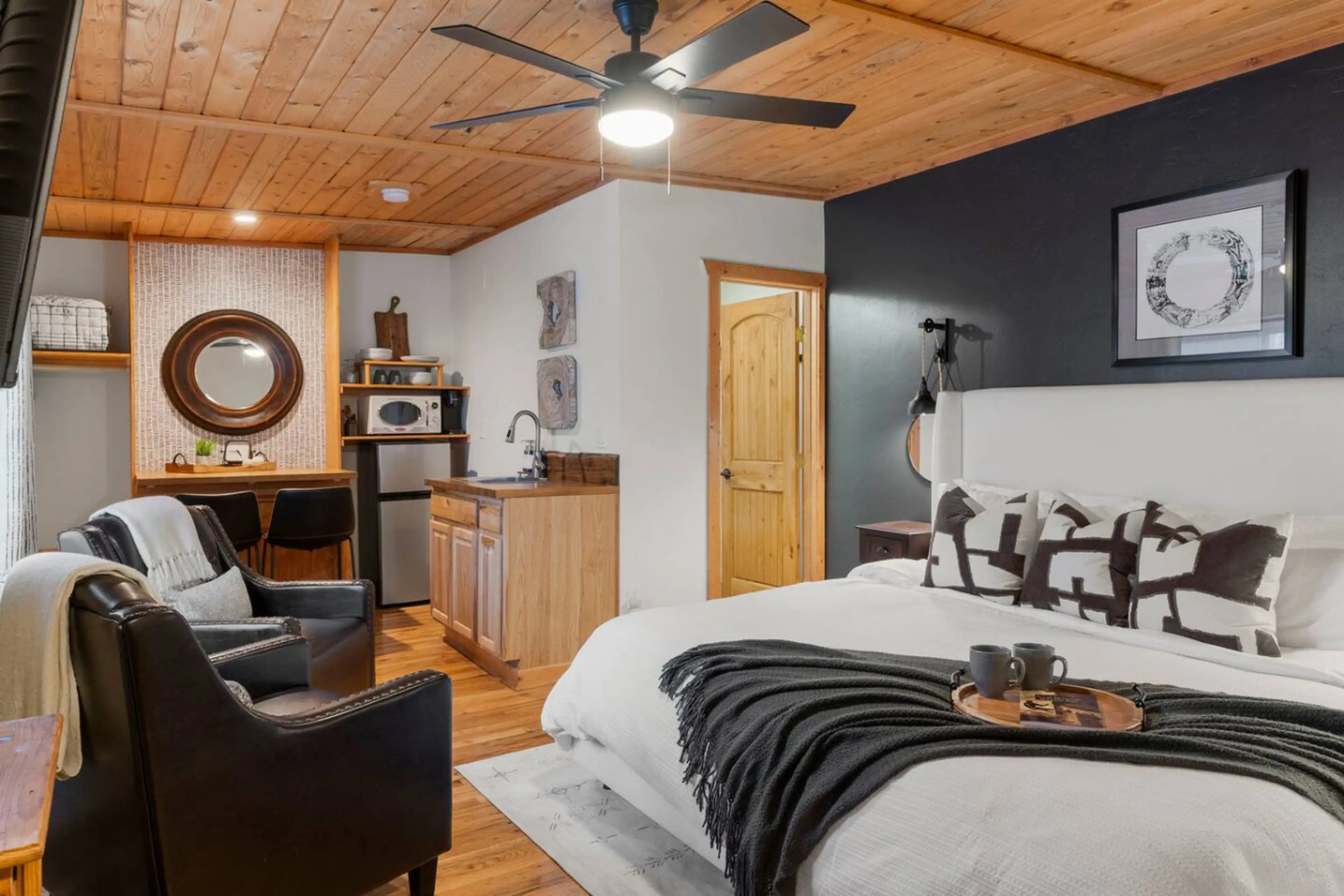 Originally built into the mountainside in the 1920s, The Rocky Mountain Haus is a historic 5-unit building and one of Grand Lake’s oldest inns. This suite has been completely remodeled to preserve its old-world charm while introducing modern comforts, including a plush Casper king mattress and pillo...